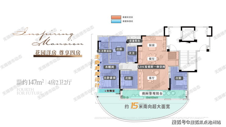 建筑面积约147㎡四房两卫户型,完美契合改善家庭需求,既保障三代同堂互不干扰,又满足二胎家庭成长空间。