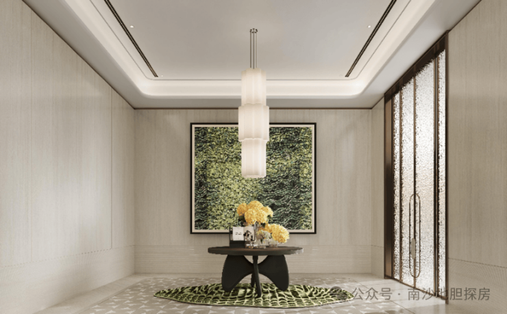 南沙壹号的公区流线与景观设计,始终围绕 “共生” 二字,将岭南文化的基因、三江交汇的自然禀赋与家庭成长的需求相融,打造有温度、有记忆的生活空间。