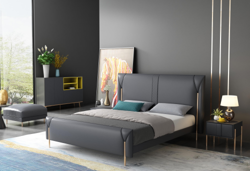 公司较具有特色的产品就是床类家具,有着极具辉煌的光泽色,具有极醒目的华丽视觉效果,彰显主人身份与地位,可贵的是为了不让金色显得太浮夸,在颜色工艺上做适当调整,加入日常感的同时还让整体家具显得更加高贵神秘。