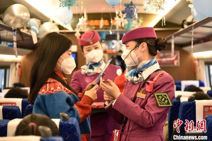酷爱滑雪运动的乘务员刘敏为旅客示范、讲解滑雪服的穿戴要领,还归纳了自己在滑雪过程中常出现的小状况及应对技巧。几名“零基础”的旅客争相着尝试体验滑雪服穿戴,不时问询刘敏一些滑雪知识。“有人教我们要领,还讲解滑雪安全注意事项,令我内心的紧张和不安减轻了不少。”旅客龙瑞芳开心地说。