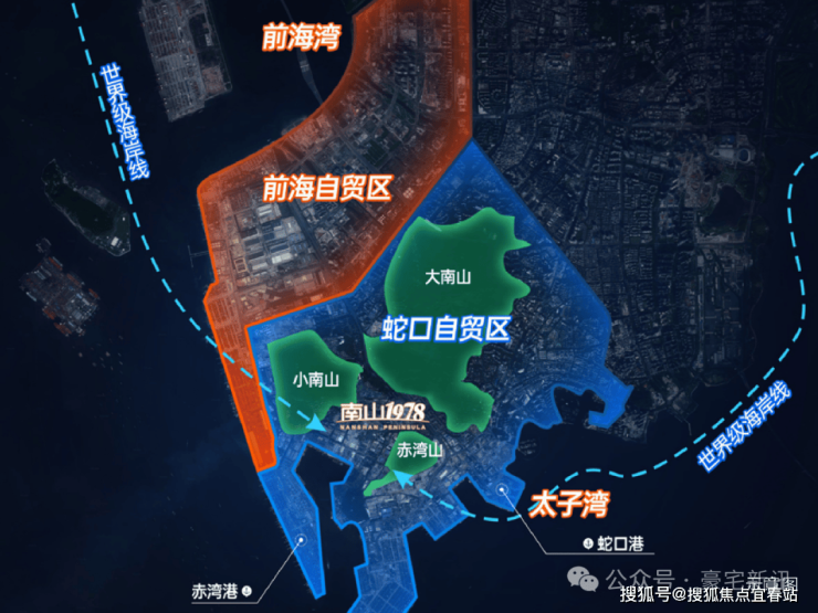 中国南山,深耕赤湾43载,以片区运营者角色,迭新赤湾约3.2平方公里土地,建面约47.7万方滨海TOD综合体(含总部办公、国际五星级酒店、购物中心、高端住宅等)。