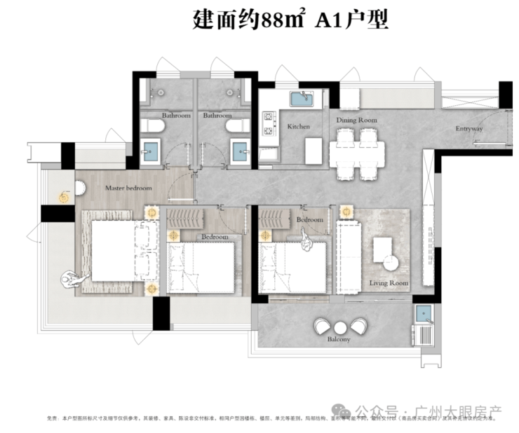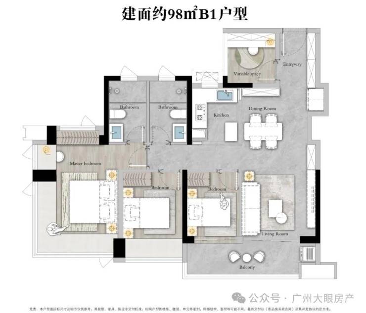 产品以主打刚需,有88㎡、98㎡、108㎡三至四房