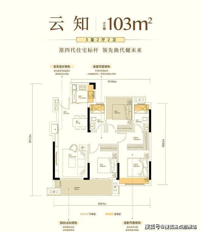 该户型拥有南北通透的双阳台,四开间朝南,打造出3+1的房室设计。特别值得一提的是,飘窗两侧均为非承重柱子,为业主提供了极大的空间优化自由度,使得户型布局更为灵活多变。此外,还配备了5个飘窗赠送,不仅阳台赠送一半面积,连次卧也享受同样的优惠政策。更贴心的是,玄关处巧妙地采用了S形设计,大大增加了收纳空间。