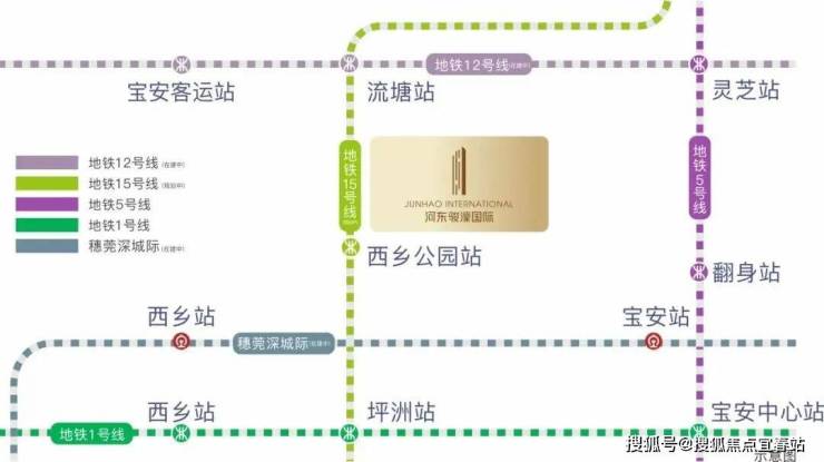 河东骏濠国际紧邻15号线(规划中)西乡公园站,直线距离约200米,无需换乘,3站直达大铲湾“腾讯科技岛”、5站直达留仙洞总部基地、6站直达前海商务区、9站直达南山科技园,12站抵达后海总部基地,构建半小时通勤圈。