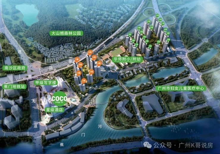 背靠9.46平方公里大山乸森林公园,俯瞰约6.2公里蕉门河景观线,可奢享慢跑、皮划艇、露营交替的水岸舒居生活。