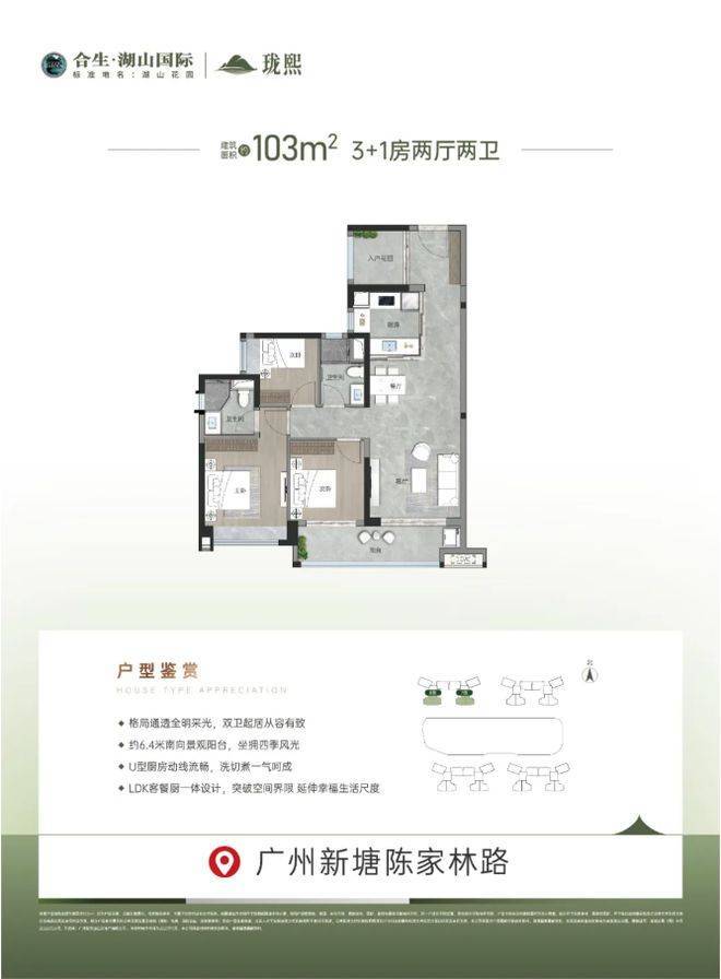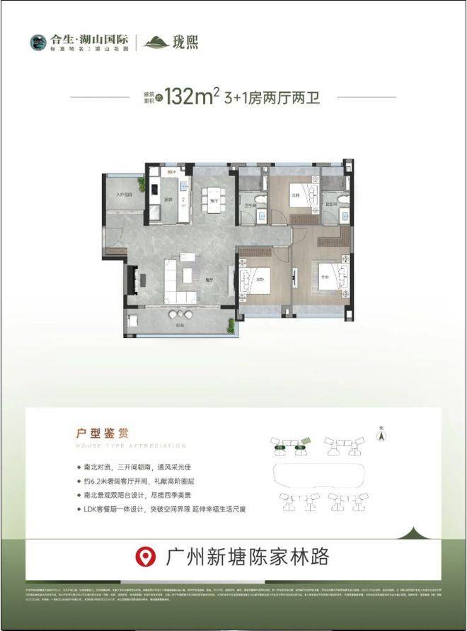 合生·湖山国际位于增城新塘陈家林路,北倚万亩陈家林自然保护区(被誉为“小白云山”),南望荔枝文化村,东邻凤凰城,西接广园快速路,是新塘少有的依山傍湖、低密宜居板块:
