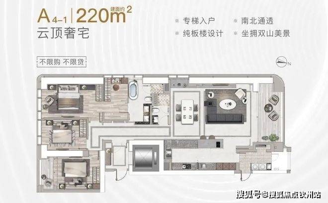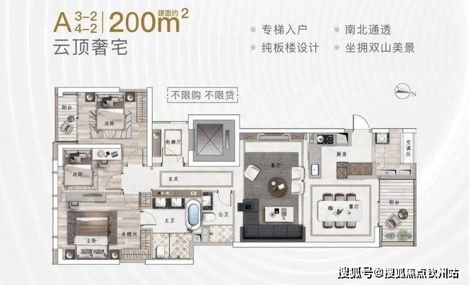 A座:建筑面积约160-220㎡2-3房(南北通透,专梯入户)