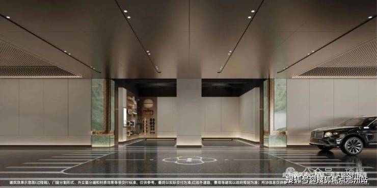 地下车库 :青石点金,选取奢华石材,以铜线镶嵌;详纹迎归,海棠文入户专属归家仪式;定制归家,依据业主志趣不同,定制归家场景