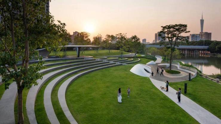 为破解城市核心区“繁华与静谧”的悖论,项目在交付区园内全冠移植了400多棵乔木,精心构筑起“都市溪谷”景观;而移目花园之外,广州母亲河珠江之水被“引入”园区,衍生出超2万平方米的滨水公园,形成CBD稀缺的亲水驳岸布局,让业主既能推窗尽享绿意盎然,又可便捷地前往国际滨水生活区享受繁华的静谧。这种“缝合城市”的实践,正如建筑大师简•雅各布斯所言:“真正的城市活力,源于功能的混合与步行的愉悦。”
