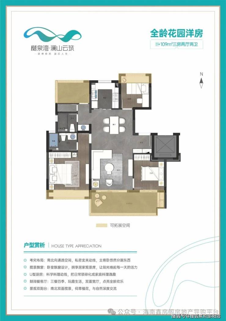 南北通透、四叶草户型、三代同堂、百变康养空间。