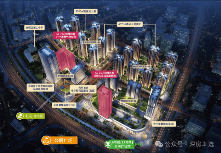 (含公明广场、红花山公园、12班幼儿园,光明二中,公明中学、中科大学深圳医院等优质配套)