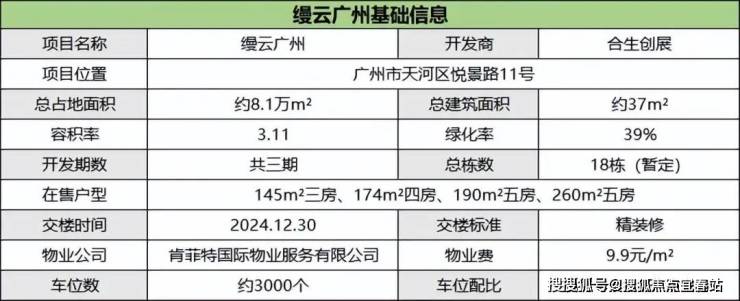 合生缦云广州,位于广州市天河区悦景路11号,是一座集高端住宅、优质教育与自然景观于一体的大型综合社区项目。项目总占地面积约8.1万平方米,总建筑面积37万平方米,共42栋楼,规划1270户。该项目的户型价格范围在6.8万元/平方米至10万元/平方米,主要以低密度小高层为主,梯户比为2梯2户和3梯2户。合生缦云不仅注重居住舒适度,更结合天河区的未来发展潜力,打造出一个适宜居住、工作与休闲的高端社区。