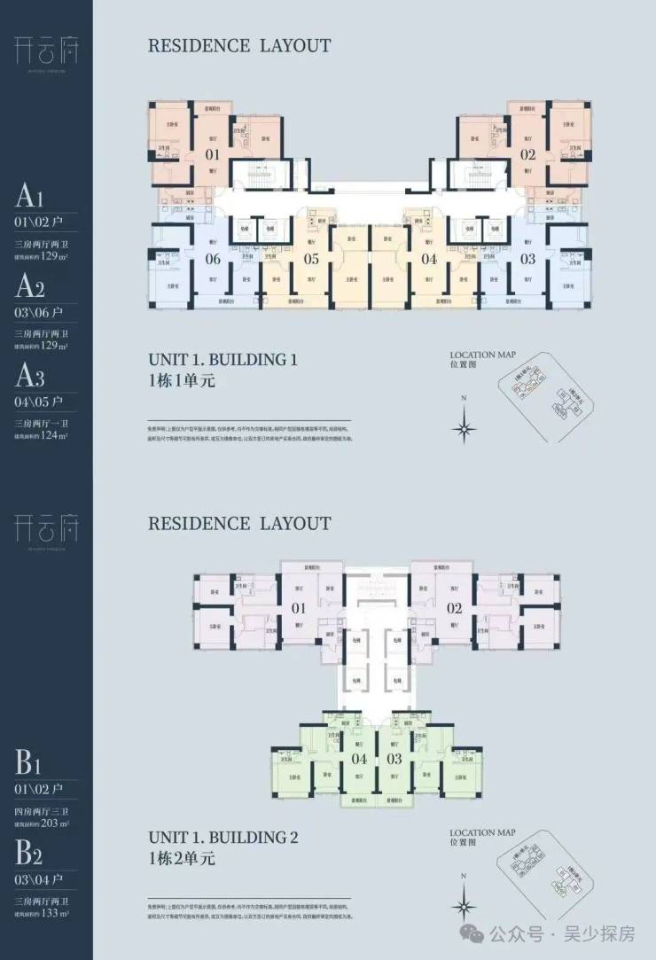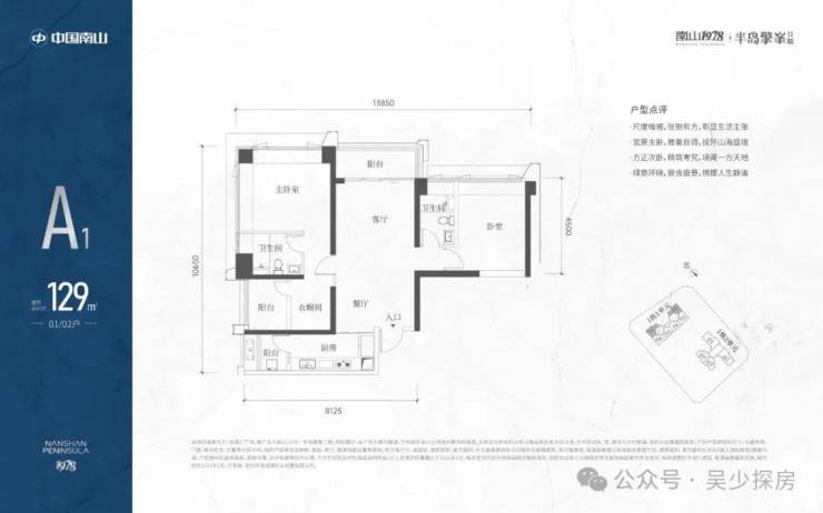 A1有两条腿,分别1-1栋01/02,主朝向是西北向,双龙抱珠格局。