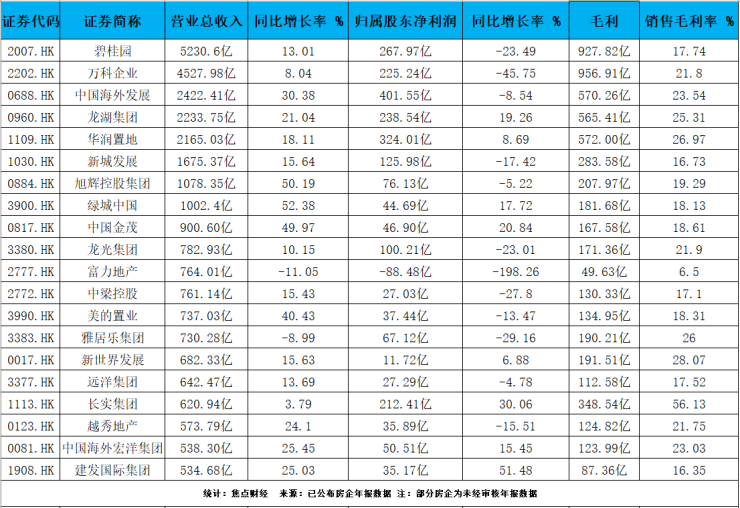就房企营收前10强来看,碧桂园、万科企业、中国海外发展、龙湖集团、华润置地、新城发展、旭辉控股集团、绿城中国、中国金茂、龙光集团毛利率分别为17.74%、21.80%、23.54%、25.31%、26.97%、16.73%、19.29%、18.13%、18.61%、21.90%,毛利率低于20%的房企占到一半。较高毛利率26.97%是属央企华润置地。