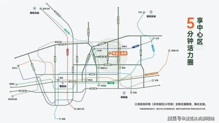深业上林苑坐落于深圳福田区八卦岭,是城市发展的核心区域,处于金融贸 易、生态景观、居住生活三条主轴交汇处,是福田区未来新的增长点和创新支点。周边交通 网络发达,6/7/9号线地铁环绕,畅达全城,更有未来规划的24号线加持。多条主干道环 绕,与城市的各个重要区域紧密相连,无论是自驾出行还是乘坐公共交通工具,都能轻松畅 达。