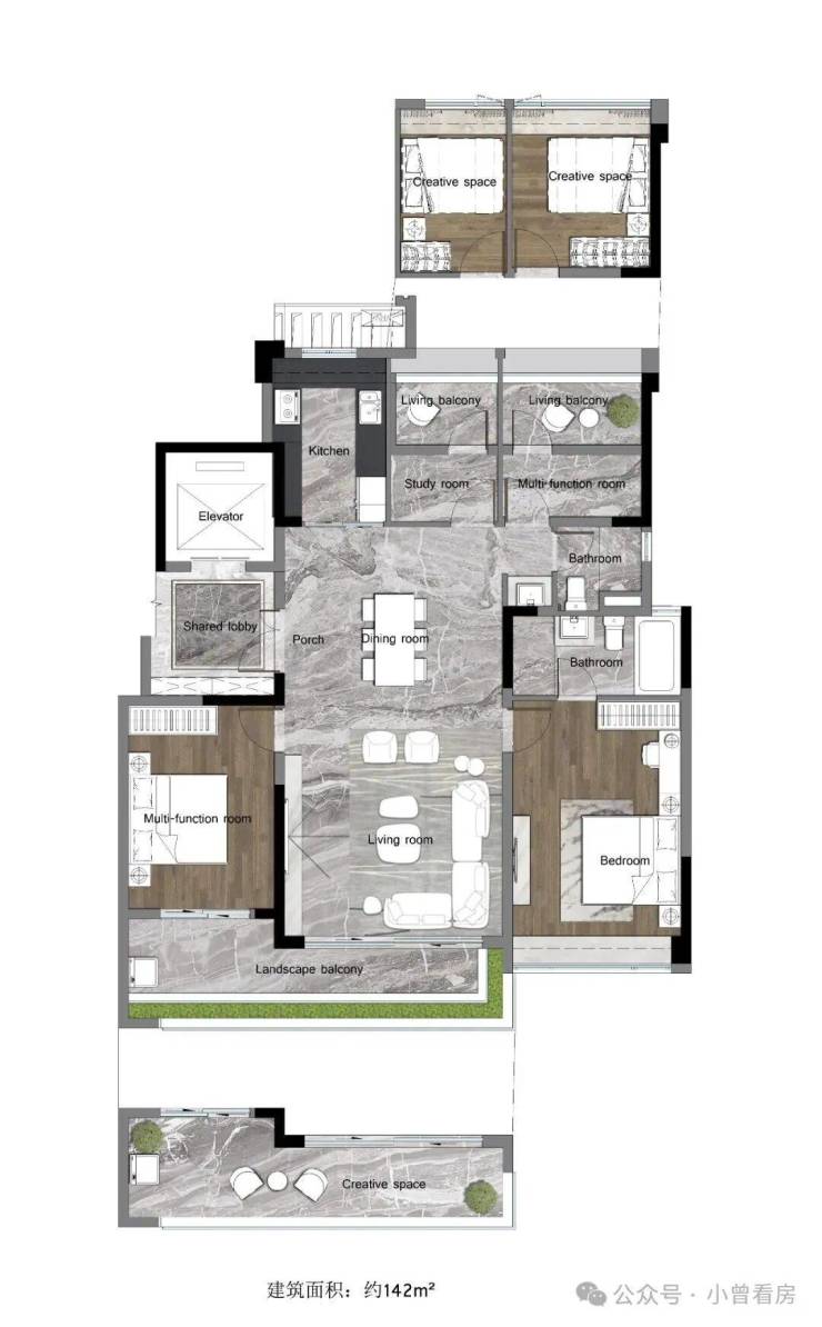 2、 拓展空间连通露台,宽广的创意设计空间,打造私家葱林