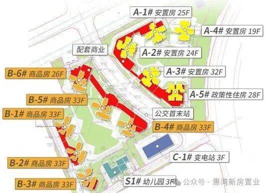 小区配套:整个项目,以中间规划路为界,左侧是6栋商品房,右侧是5栋安置房(含1栋公租房),配建有1所9班幼儿园、托儿所和公交首末站,1.8万㎡围合式大园林及1.5万㎡红线内外绿化。