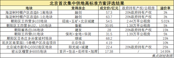 北京10宗高标准投报地块结果全部揭晓