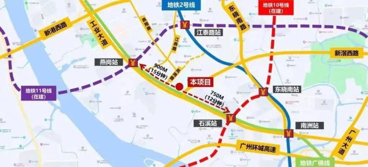 燕岗站同时是大环线11号线的站点,去海珠琶洲、天河、越秀等核心板块都很方便;