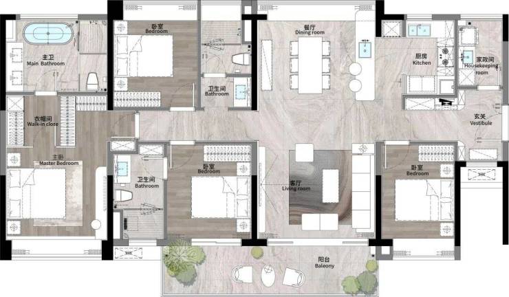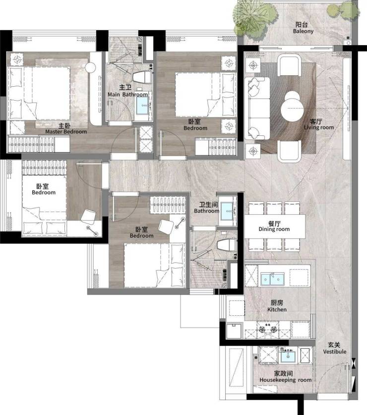 建面约140m² | 四室两厅两卫——南向大开间,全家生活氧气场 外接宽敞阳台,通风对流,聆听和风细雨,享全天鲜氧供应;——隐藏式收纳,高效利用空间从老式瓷器到各色家具均可收纳,宛若一个迷你的古玩市场。——开放式厨房配置,不做孤独的烹饪者情景式厨房设计,大方展现女主人手艺——奢阔主卧,主人的行政套间私享独立卫浴、衣帽间,观景飘窗,打造非凡的起居体验;