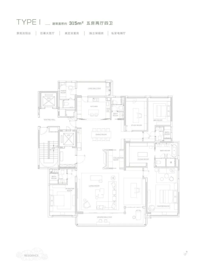 【315㎡户型】 南北双阳台-独立保姆房-巨幕大宽厅-私家电梯厅