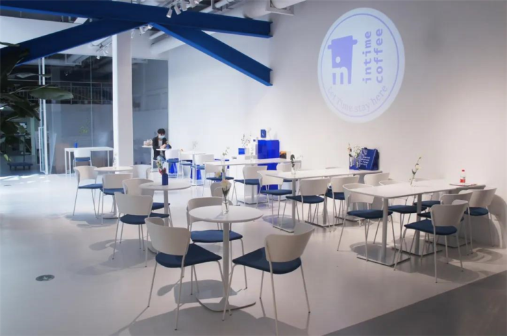 工业风的白色架子,树木围合在通透的玻璃幕墙里面,互相倒映对话,形成有趣的艺术空间。户外大跨度白色屋架,保留了工业时代老厂房大跨度空间的特色,漫步其中,令人如同在老电影中徜徉。