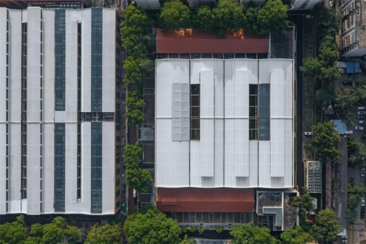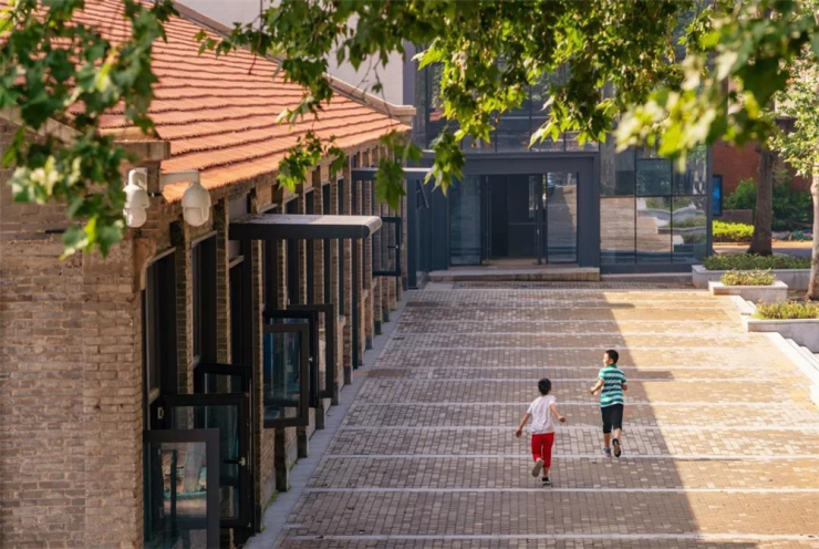 拆除部分结构和功能已不适用于现代生活的建筑,新建建筑则采用通透玻璃幕墙和灰色不加装饰的墙面,以低调而不张扬的姿态,融入老建筑群,红砖水泥的“旧”搭配玻璃幕墙的“新”,达到新旧和谐融合的理想状态。