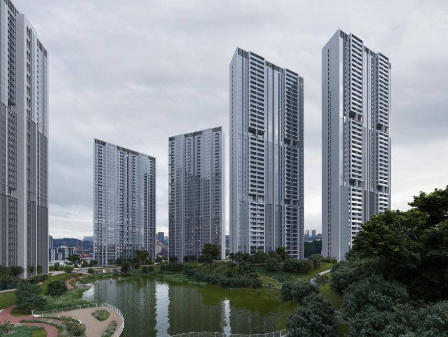 7栋超高层住宅围内湖而建,以公建外立面设计,现代主义风格,宽幕玻璃窗与线条的优质融合,格调自显。双向巨幕阳台,揽天际视野,瞰城市繁华;阔尺客厅、套房主卧、双阳台设计,赋予生活更多自由空间,执领人居新高度,致礼时代新典范。
