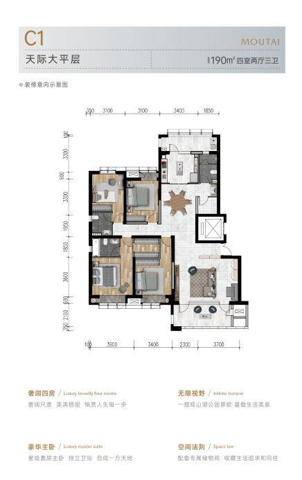建筑面积约130-190㎡天际大平层、建筑面积约130㎡高定复式