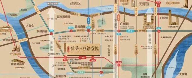 项目位于海珠区工业大道中的燕岗地铁站旁,地铁上盖项目(在建中的11号线+广佛线),坐落于工业大道中,背靠珠江后航道,傲立于海珠新活力文商旅融合圈与广州市"首个"后航道服务型制造创新带交汇的核心地带,海珠后航道将成为海珠未来唯一连片开发的豪宅板块。