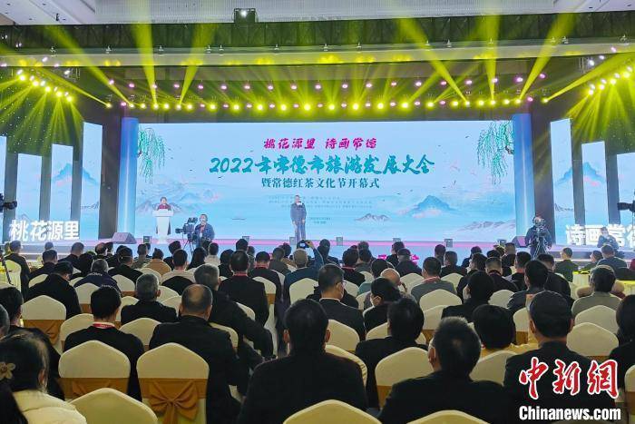 中新网常德12月9日电 (记者 杨华峰)8日晚,随着极具地方韵味的常德丝弦说唱RAP《欢迎您到常德来》的旋律响起,湖南常德市2022年旅游发展大会暨常德红茶文化节在柳叶湖国家级旅游度假区启幕,主题为“桃花源里·诗画常德”。