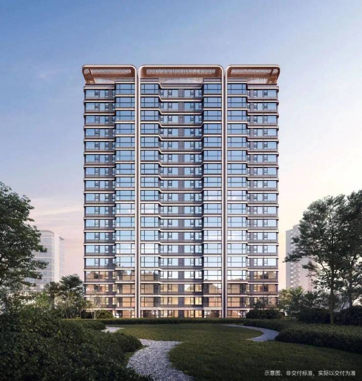 社区立面提取市花白玉兰形意,建筑局部运用香槟金金属铝板,融入曲线圆弧元素,打造了全嘉定最美的城市天际线。