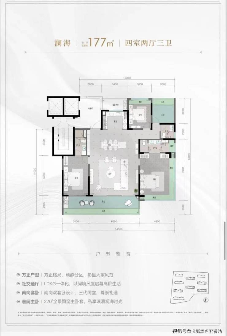 规划建筑面积约 128 - 211m² 奢装大平层,一梯一户设计尽显尊贵私密,约 3.1 米阔绰层高营造出开阔大气的空间感。270° 全景飘窗主卧套、四开间朝南等创新空间布局,带来全新舒居体验,让业主在家中就能尽情欣赏窗外的美景,享受阳光的沐浴。