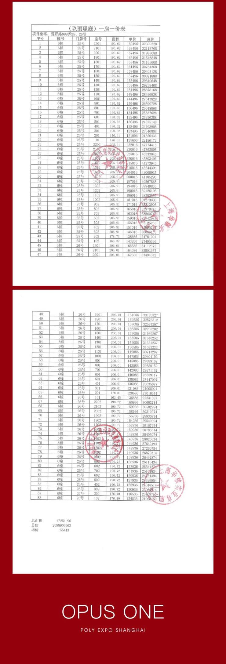 价格梯度上,建面约190㎡中间套总价段集中在2300-3000万,建面约205㎡四居边套总价集中在2800-4000万。