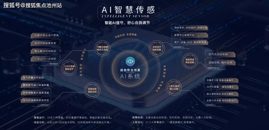20大黑科技加载,室内AI智能传感器收集反馈信息,实现分屋、分室、分时的控制温度、湿度等指标,让老人、小孩、青年都有属于自己的定制化居室空间。