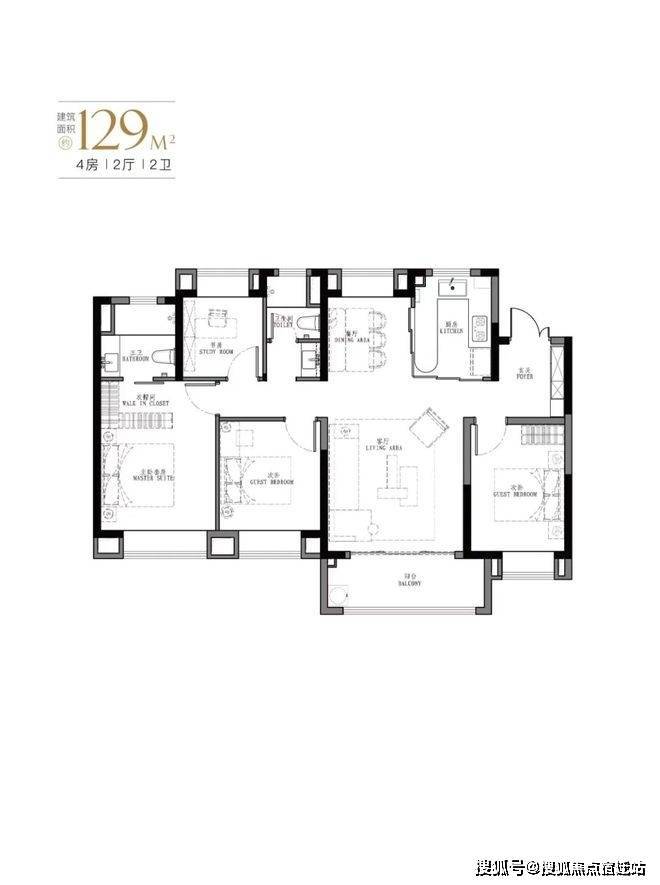 产品:103㎡、107㎡的三房两厅两卫及123㎡、129㎡的四房两厅两卫.