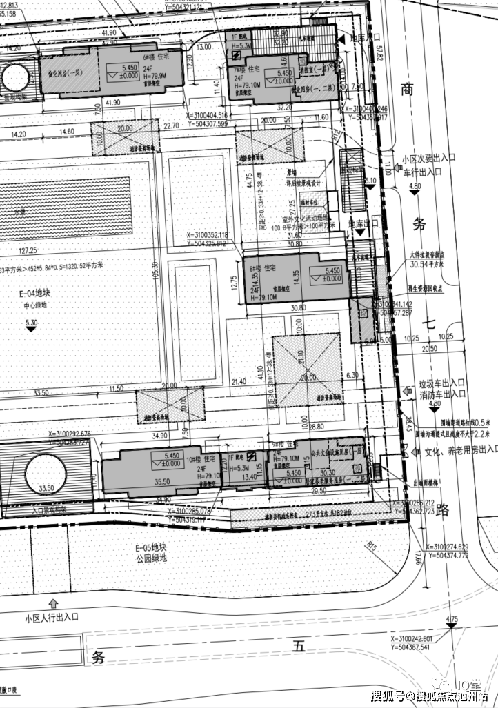 其它:E-04地块为R2(二类居住用地)兼容B11(零售商业用地)、B13(餐饮用地);E-07地块为B2(商务用地)兼容B1(商业用地);E-04地块建筑面积≤95076m²,兼容建筑面积≤9507m²;E-07地块建筑面积≤90306m²,兼容建筑面积≤44249m²,E-07地块东北侧须设置一座不小于180米的超高层建筑。E-07地块地上建筑面积45153m²,其中商业建筑面积不小于3万方。