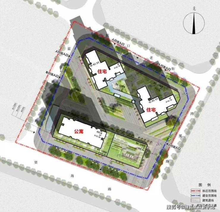 公寓更靠近望海路,距离海边更近,住宅部分则靠后,靠近蓝漪花园以及后面的渔二村。