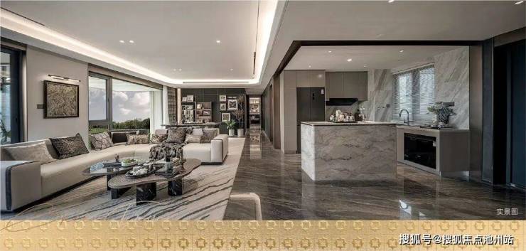约7.7米开间的奢阔横厅,以LDKG一体化无界格局,赋予家庭核心活动区前所未有的开阔视野与包容气度。这一尺度不仅为家人的日常互动、社交宴请提供了宽阔的舞台,更让阳光与清风在空间中自由流动,营造豁然开朗的生活意境。