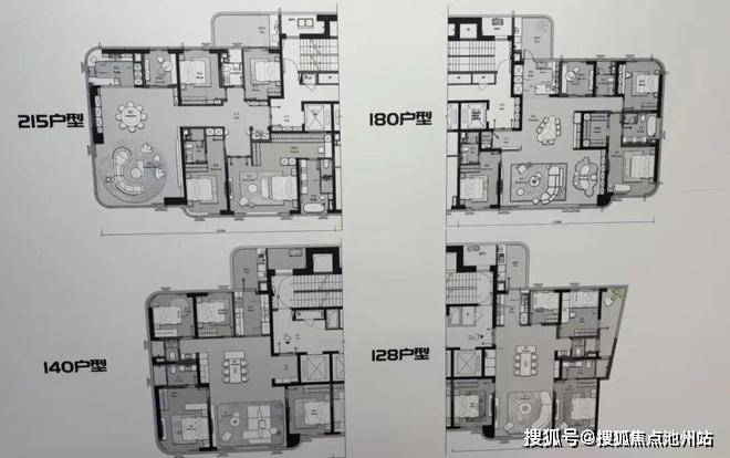 小梅也第一时间搞到户型图,面积段128、140、180、215四个户型,户型图如下 ,具体还是以官方为准。