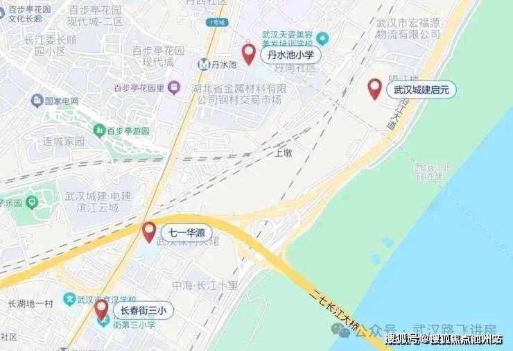 交通配套:距离地铁1号线(12号线)丹水池站直线距离约500米,由于铁路阻隔,步行约2公里;项目周边就是二七长江大桥、解放大道、江北快速路,但早晚高峰期会堵车。
