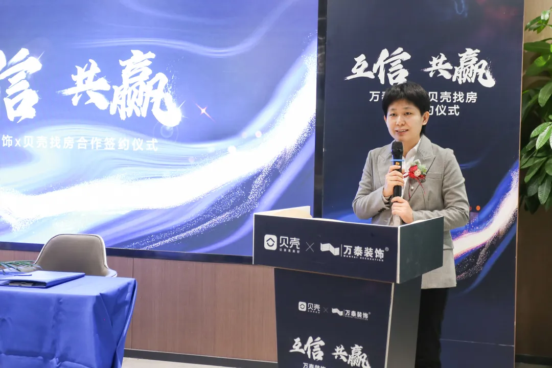 签约仪式上,在行业深耕多年的万泰装饰总裁柳方洲表示:“从初步接触到考察的逐渐深入,我们发现贝壳向上向善的理念,和万泰25年的企业价值观是高度契合的,我们坚信通过此次合作,万泰装饰将与贝壳携手实现上下游无缝链接和业务协同,以高品质服务帮助客户又快又好的实现温暖幸福家的梦想。”