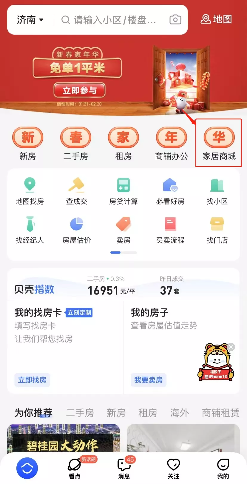△贝壳APP首页上线家居商城