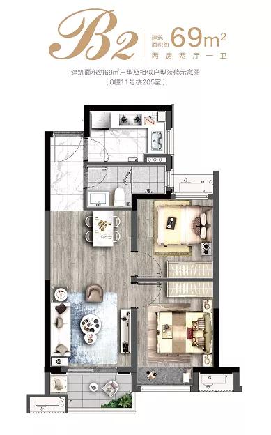 旭辉·公元二期均价35027元/㎡,主力产品为建面约69-89㎡的2-3房,总价约240万起,装修交付;