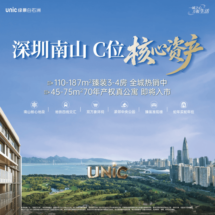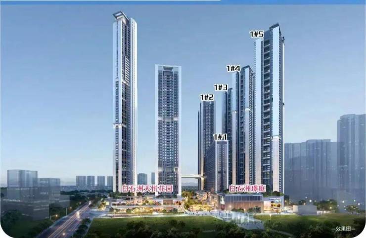 项目基础资料【发展商】绿景天盛集团【项目总名称】 绿景白石洲【项目总建面】约500万平【本次推售】绿景璟庭(一期)【一期占地】约3万【一期建面】约46万平【产权年限】70年【本次推售】住宅【推售户数】1257套【推售面积】110-125-187平【总楼层】74层【层高】3米【梯户比】高区3梯6户、低区4梯7户【产品面积】110-125-187平米【使用率】71%【单价】约9万【车位数】1983个【交楼标准】精装【交付时间】2025年年底【物业费】8.8元
