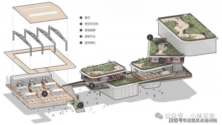 项目创新性地提出了“折叠社交”模式,通过“底盘双环”(精密商业环与家庭照料环)与“垂直三境”(低空花园露台、空中会所、云端会所)立体交织,将社交、生活与服务功能精密嵌入建筑的不同标高。