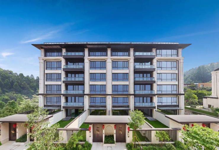 Ø 新中式:新中式风格院墅产品,外立面全干挂石材;