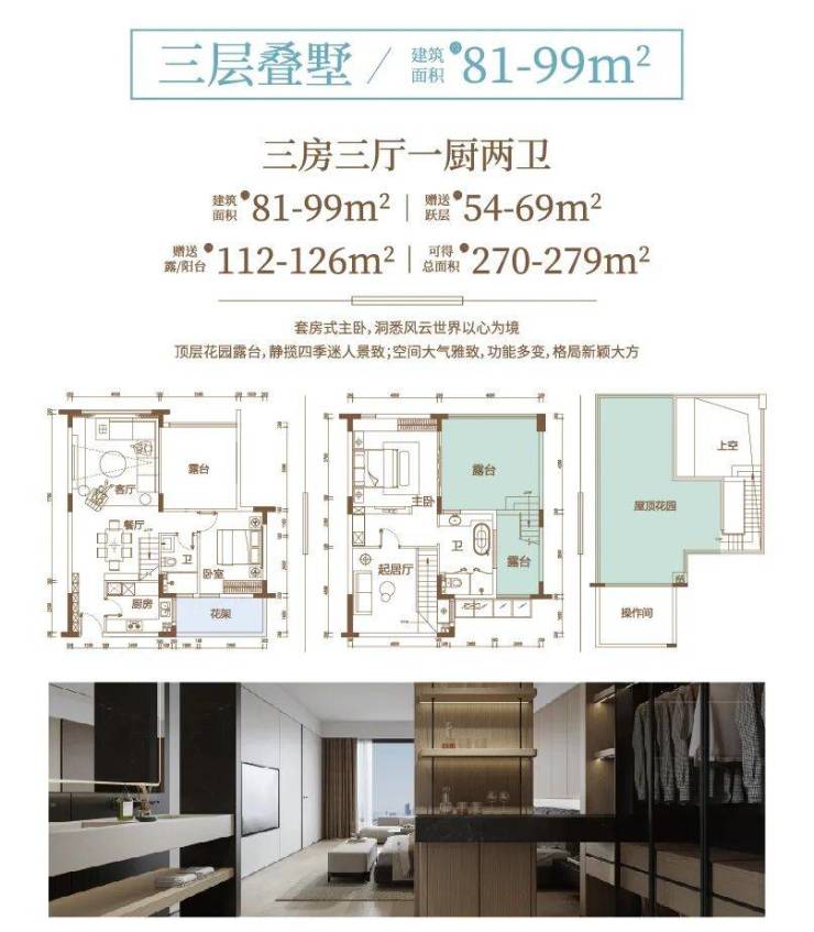 打造「地上院落 + 空中露台 + 私属空间」三重立体格局。晨起在庭院栽花种草,午后于露台品茗会友,入夜在星空下泡池观星,垂直生活剧场里,每一层都是独属的生活诗篇。