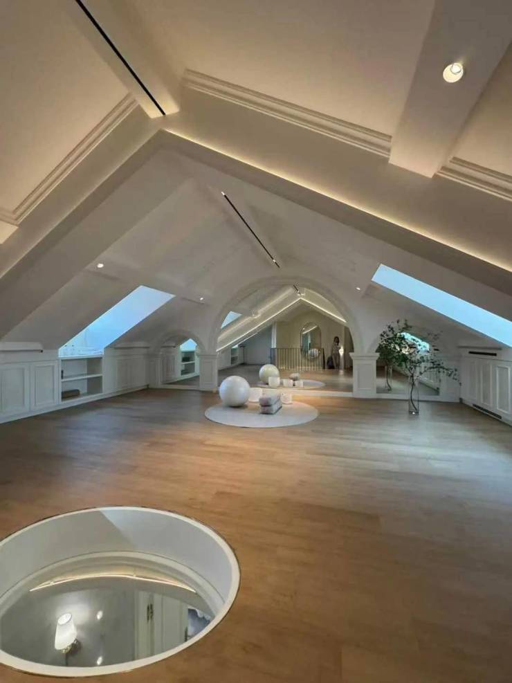 层高:1楼3.6米,2-3楼3.4米,地下室挑高5.5米,阁楼最高3.1米