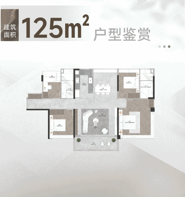 约125平四空间,更堪称改善家庭一步到位的最优选。